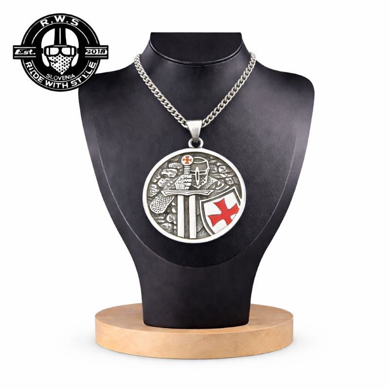 Ta čudovit kos nakita združuje izjemno obrtništvo s simboliko viteštva in zaščite. Verižica je izdelana iz visokokakovostnega jekla, ki zagotavlja trajnost in obstojnost. Glavni obesek prikazuje viteza v dinamičnem položaju, ki drži svoj ščit, simbol moči, poguma in zaščite.